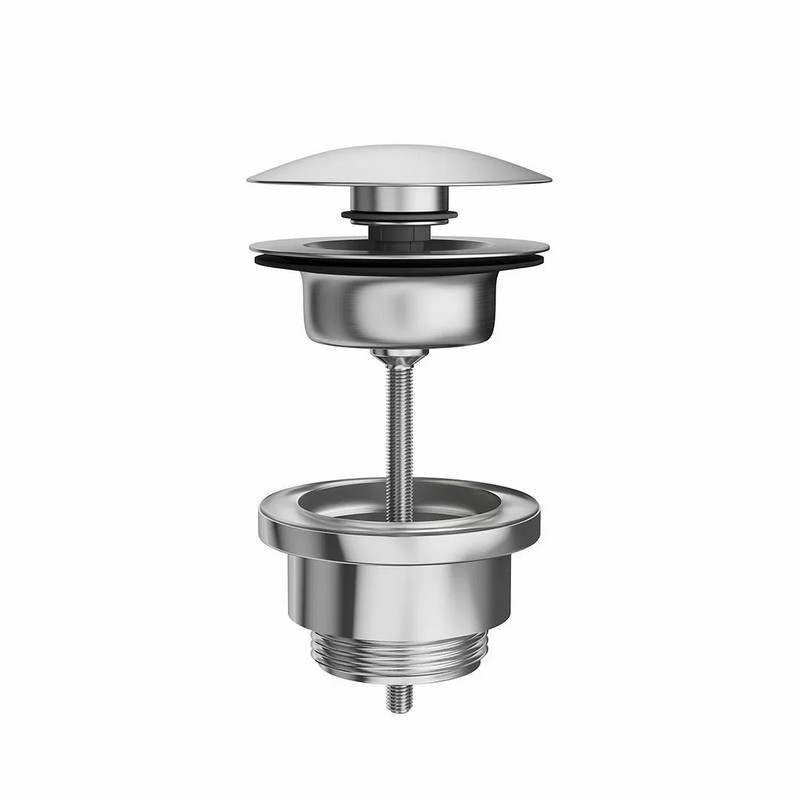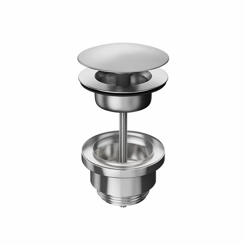 Донный клапан для раковины выполнен из нержавеющей стали AISI 316: этот металл обладает особой устойчивостью к механическим воздействиям, гипоаллергенен, не подвержен коррозии. Нажатие на клапан закрывает его, повторное нажатие открывает.