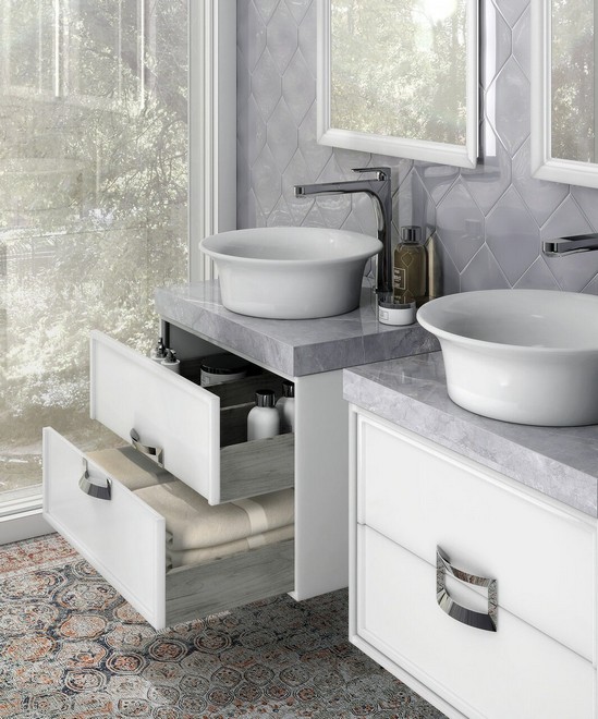 | Особенности | :Белая матовая подвесная тумба с двумя выдвижными ящиками. Ящики закрываются плавно и бесшумно. Для тумбы предусмотрена керамическая столешница с эффектом необработанного или полированного камня. Сочетается с накладными раковинами CANALETTO и BUONGIORNO. |