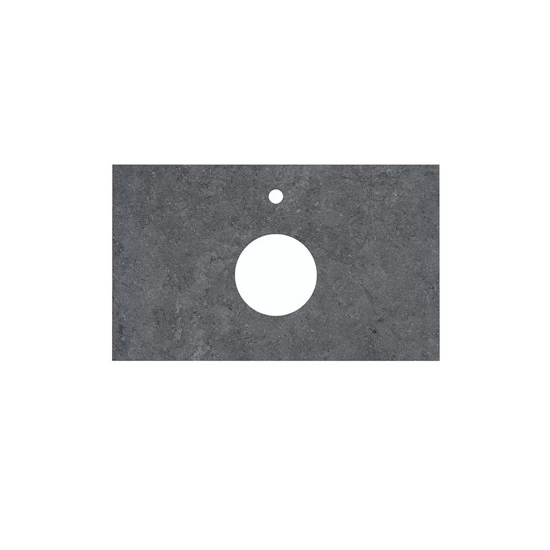 Столешница из керамического гранита с эффектом камня Роверелла с отверстием под смеситель. Отверстия для раковины и смесителя располагаются в центре. Смеситель устанавливается в столешницу (используйте смесители с подходящим типом установки).