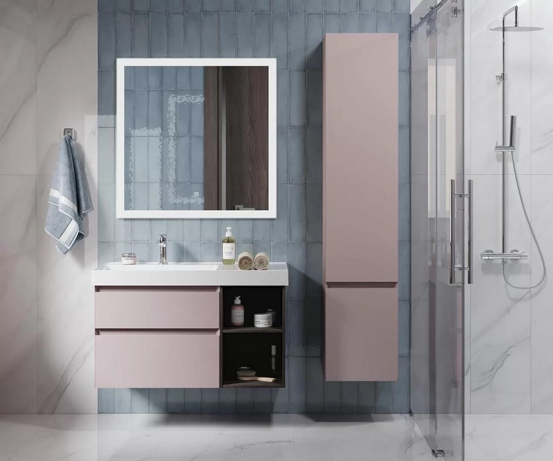 | Особенности | Подвесная тумба розовая матовая с двумя выдвижными ящиками и открытой полкой справа древесного цвета. Ящики закрываются плавно и бесшумно благодаря амортизирующей фурнитуре Hettich. Внутренняя отделка ящиков напоминает фактуру ткани. Сочетается с раковиной CUBO шириной 90 см. |