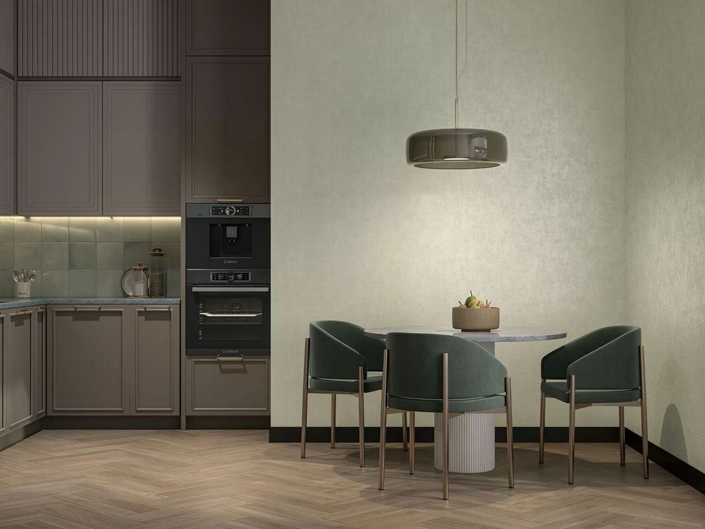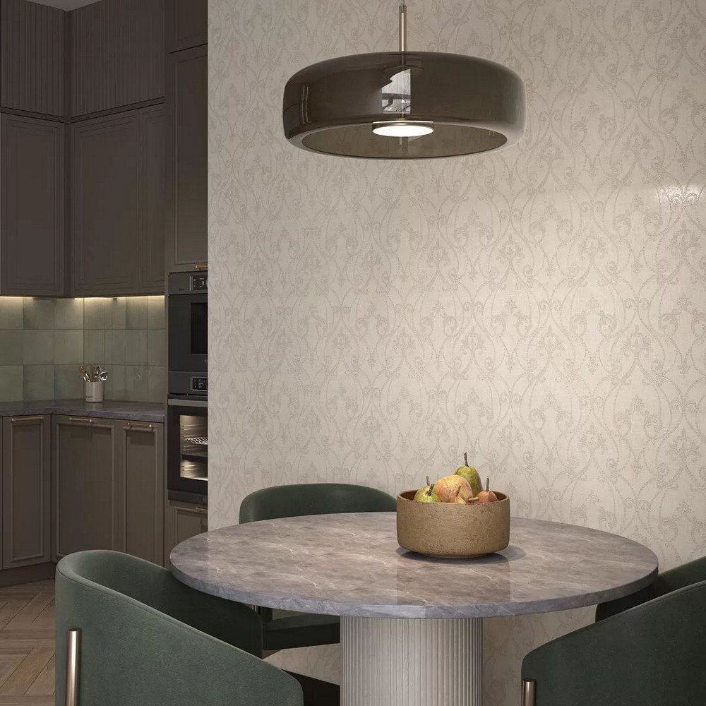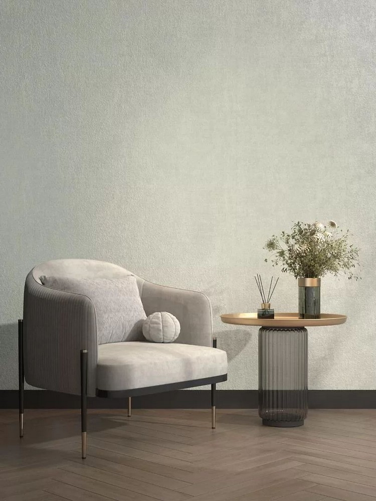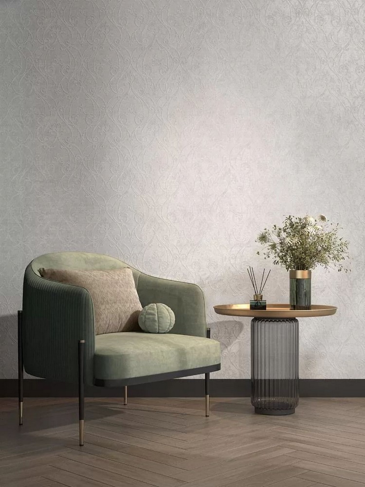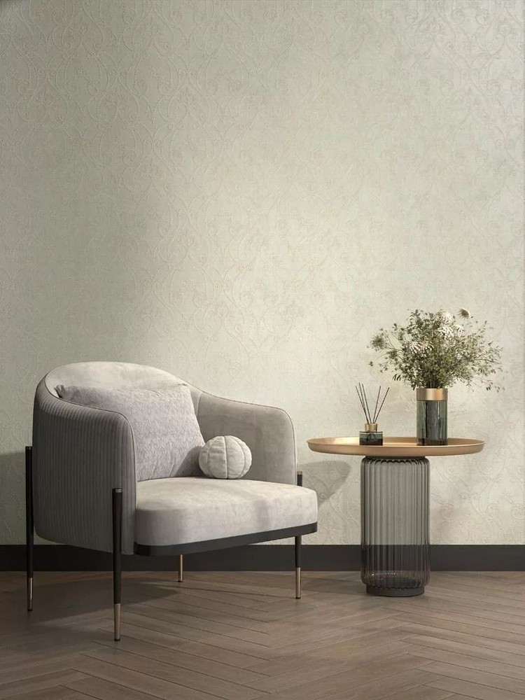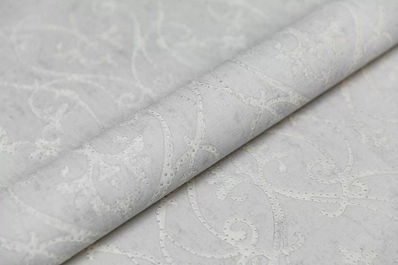 Роскошь коллекции раскрывается через сочетание флизелиновой основы с изысканными металлизированными эффектами и объемными элементами. Уникальный визуальный эффект достигается благодаря тонкой игре микротекстуры ткани с матовыми стежками и фоновой фактуры бетона, а светлая палитра делает коллекцию универсальным решением для любых интерьерных задач.