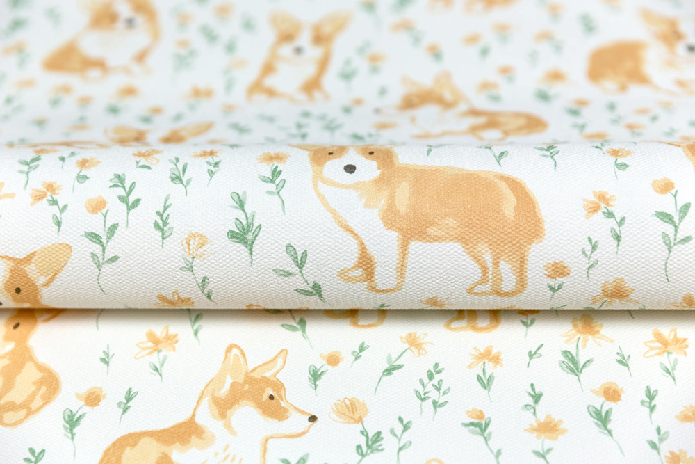 KM7801 Обои виниловые на флизелиновой основе Уик-энд мотив, жёлто-зелёный корги KЕРАМА МАРАЦЦИ