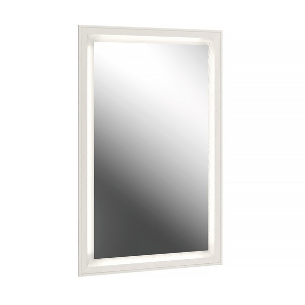| Особенности | Зеркало с каркасом из МДФ в белом цвете. LED-подсветка по периметру управляется бесконтактным выключателем в нижней части зеркала. Иммется диммер для изменения уровня освещенности. |