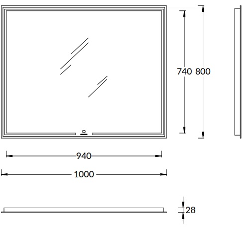 MIO.mi.100/WHT Зеркало Mio/Мио прямоугольное с диммером 100, белое