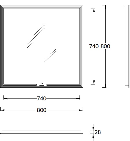 Зеркало MiO выполнено с деликатной подсветкой по периметру. Светодиодная подсветка включается одним прикосновением к сенсору в нижней части зеркального полотна, там же нанесён логотип KERAMA MARAZZI. Имеется встроенный диммер.