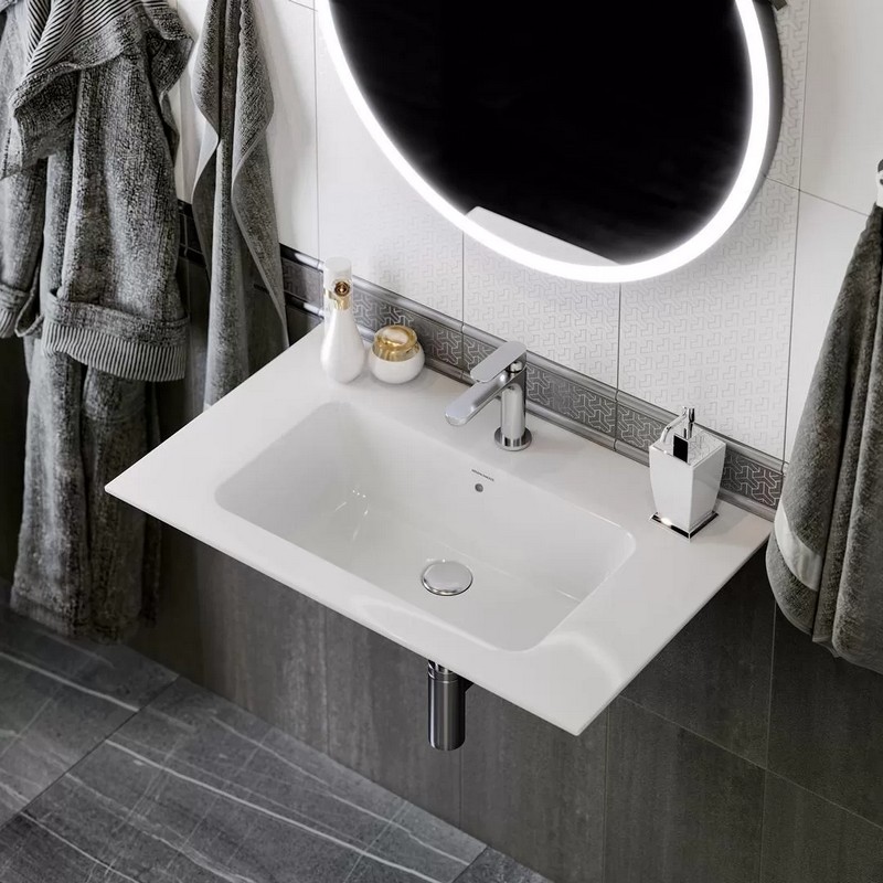 Тонкая белая глянцевая мебельная раковина с неглубокой чашей и отверстием под смеситель, ширина 75 см. Раковина с отверстием слив\перелив, расположение чаши центре раковины. Донный клапан в комплект не входит, рекомендованный донный клапан DRR.1/WHT. Сочетается с тумбами PIANO шириной 75 см и металлической структурой Piano Next шириной 75 см.