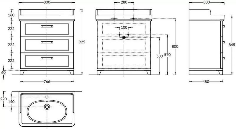 | Способ установки сантехники/мебели | напольный |