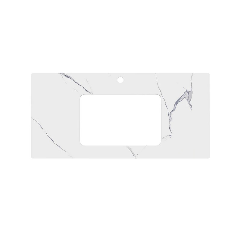 Столешница из керамического гранита Монте Тиберио с отверстием под смеситель. Предназначена для использования с раковинами, встраиваемыми снизу, и тумбами серии Плаза Модерн и Плаза Некст. Отверстия для раковины и смесителя располагаются в центре. Смеситель устанавливается в столешницу (используйте смесители с подходящим типом установки)