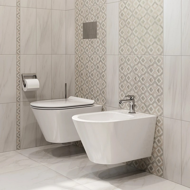 Подвесной безободковый унитаз без сиденья. Рекомендуемое сиденье Plaza Modern/Плаза Модерн доступно в белом цвете, крышка оснащена функциями плавного опускания и быстрого снятия.
